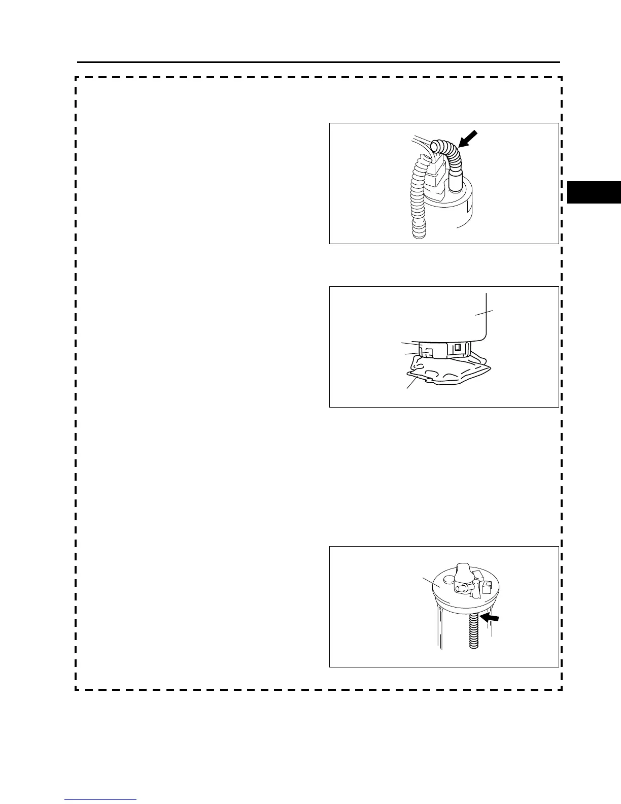 • Slowly remove the fuel pump being careful not to press the fuel pump discharge pipe or pull the