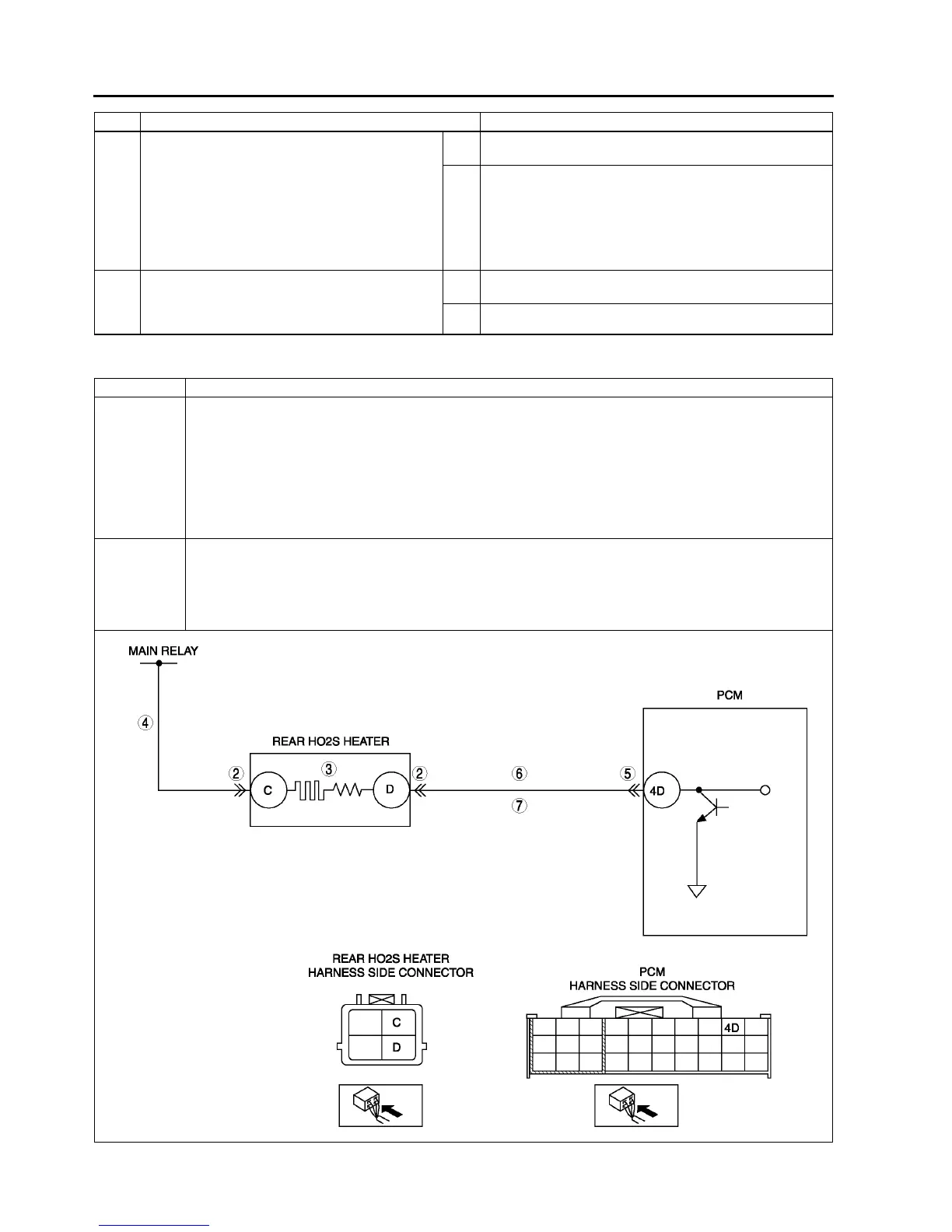• Short to ground circuit between rear HO2S terminal D and PCM terminal 4D