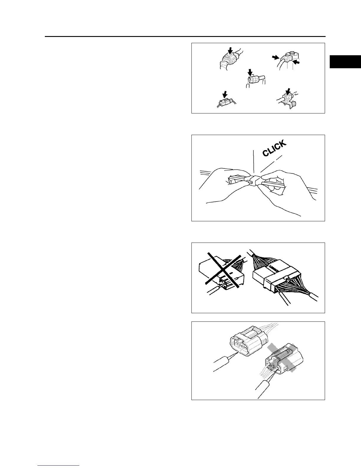 • When locking connectors, listen for a click