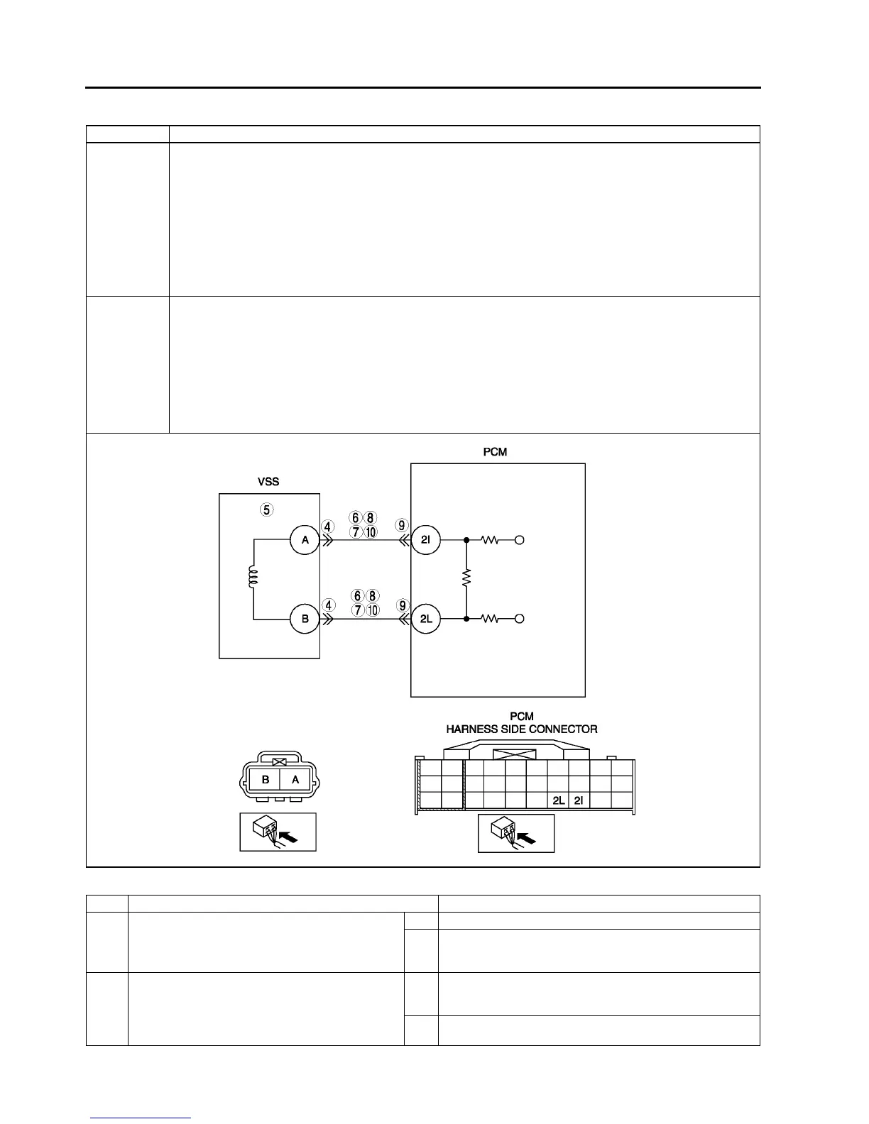 • Open circuit between PCM terminal 2L and VSS terminal B