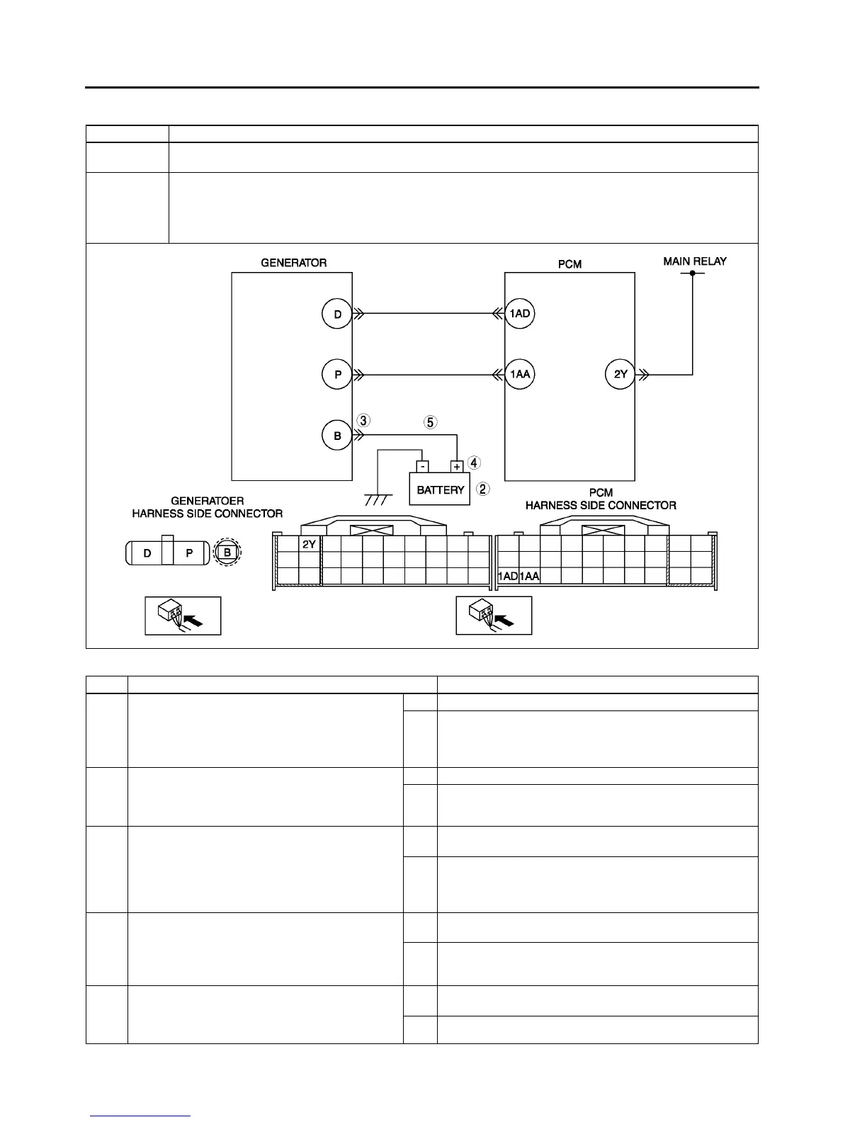 • PCM judges generator output voltage is above 17 V or battery voltage is below 11 V during engine