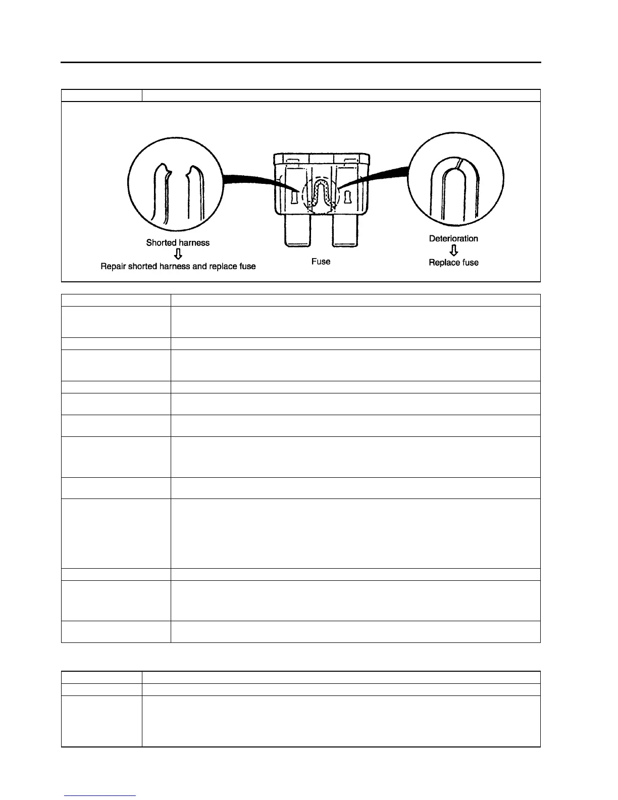 Damaged fuse Related wiring harness