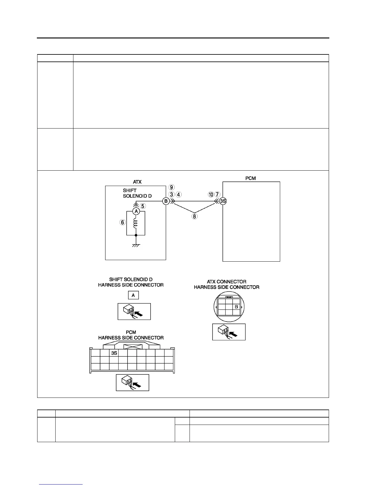 • Open circuit between shift solenoid D terminal A and ATX connector terminal B