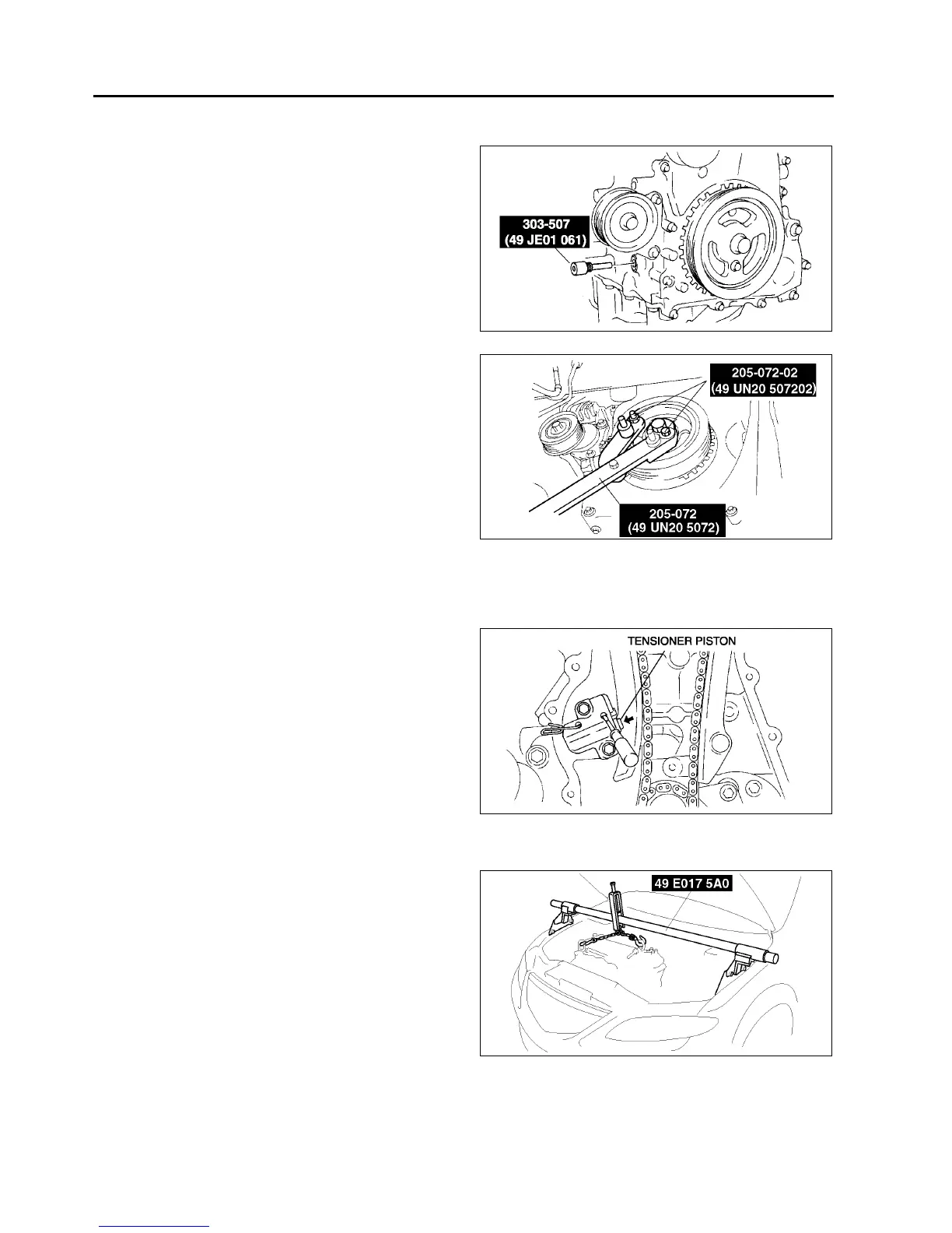 3. Hold the tensioner piston using a 1.5 mm {0.059