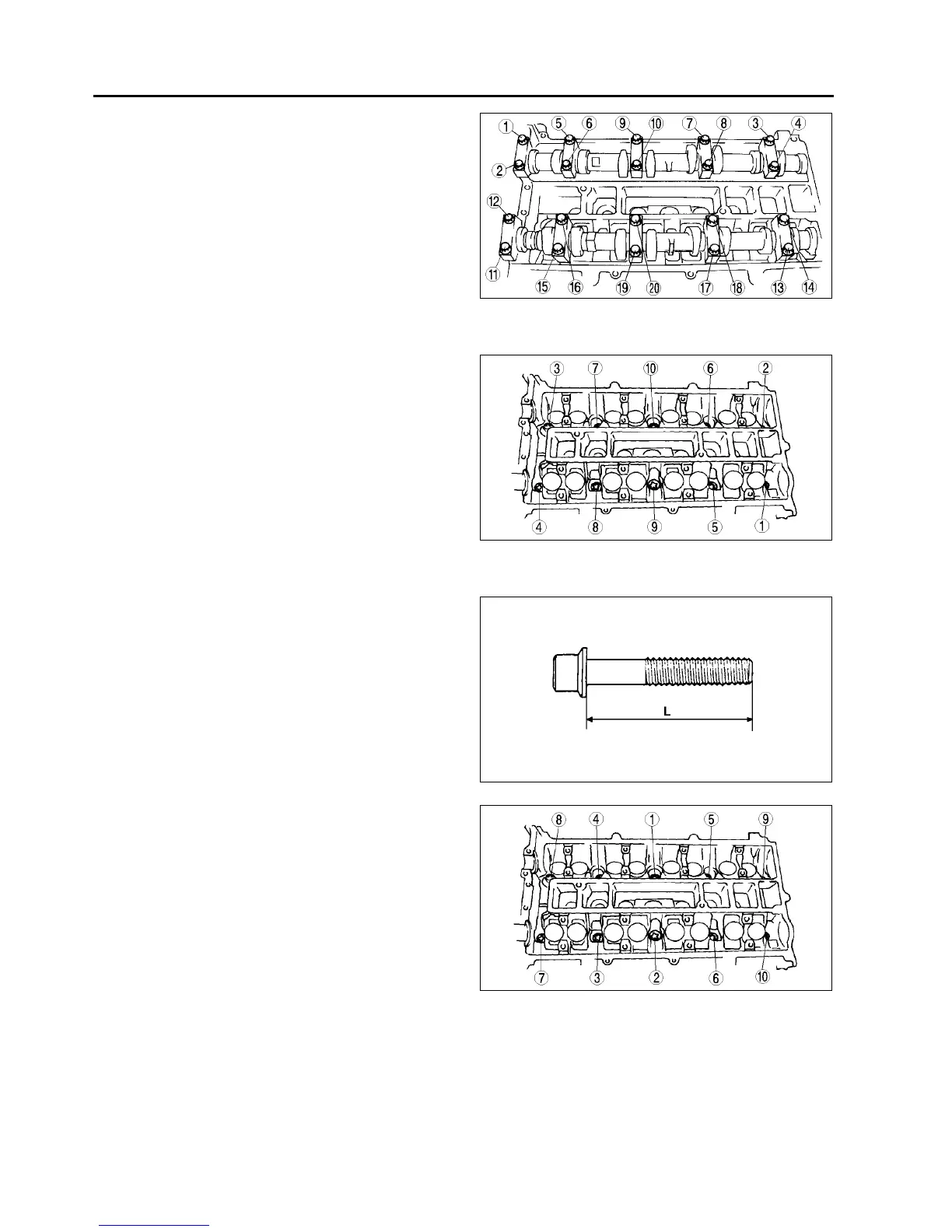2. Tighten the cylinder head bolts in the order shown