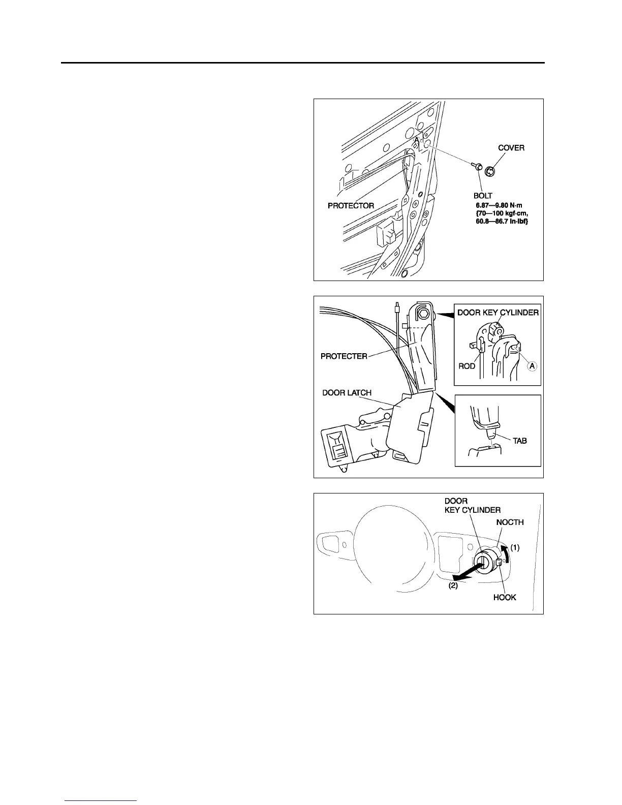 FRONT DOOR KEY CYLINDER REMOVAL/INSTALLATION