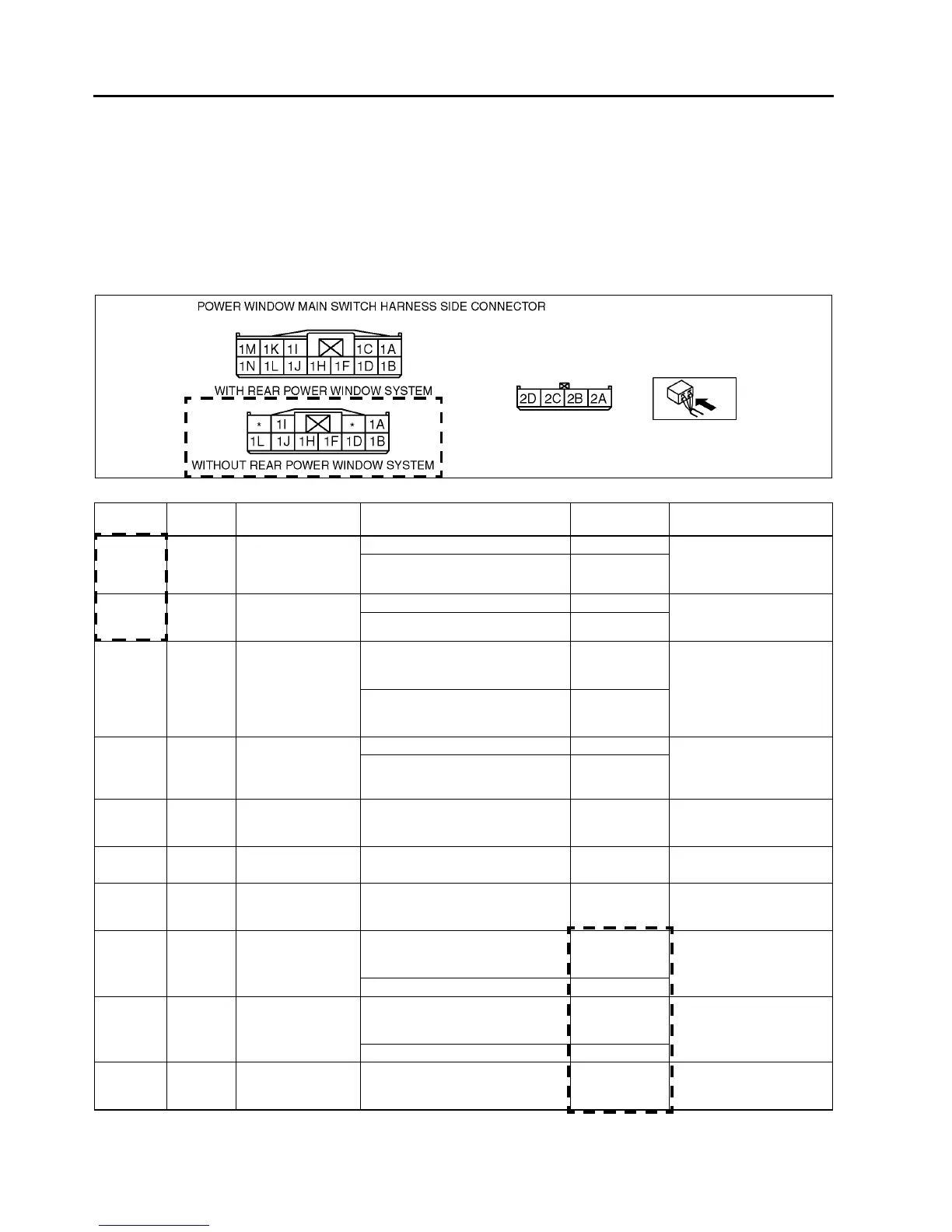 4. Disconnect the power window main switch connector before inspecting for continuity at terminals 1M (1J