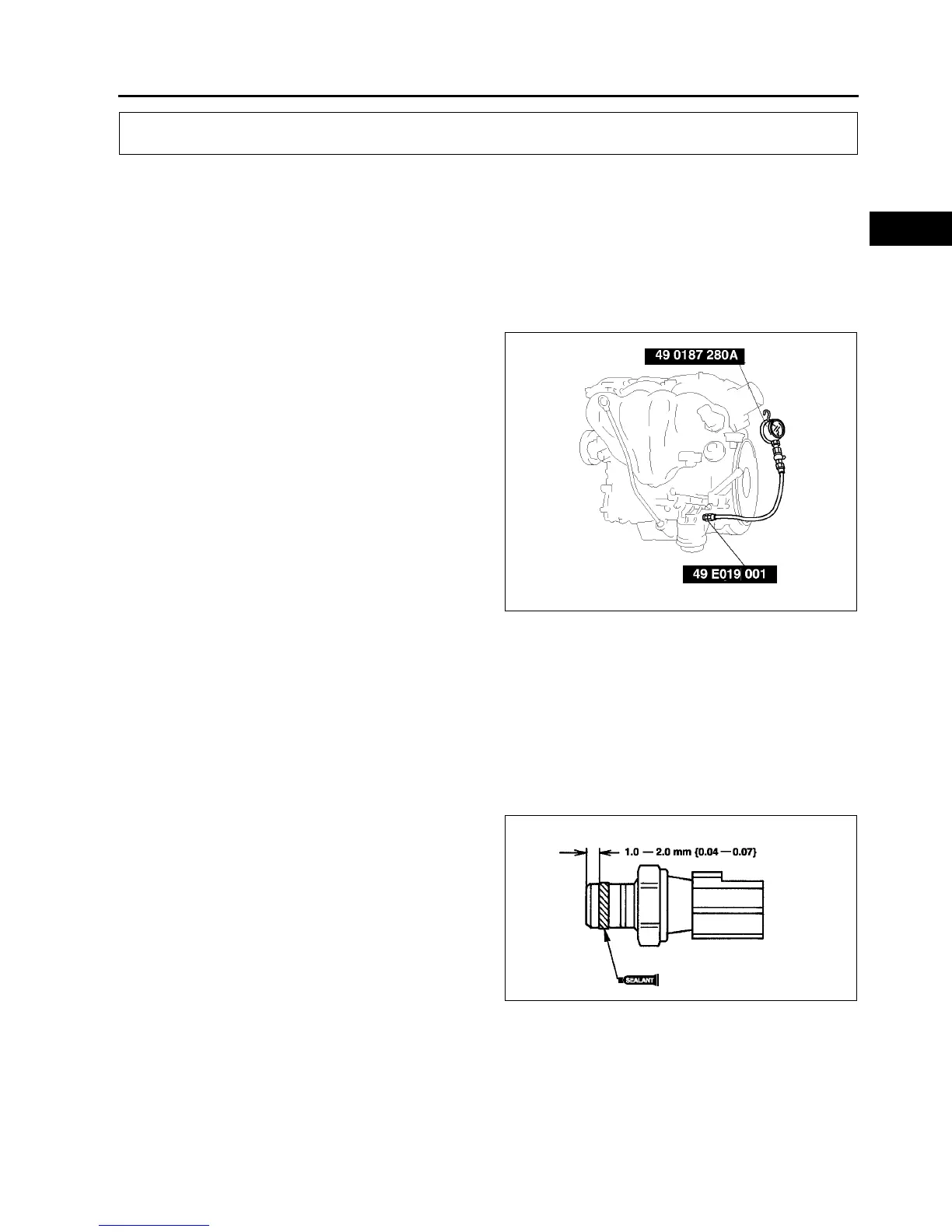 • Any sealant stuck at the end of the oil pressure switch can cause operation malfunction of the oil