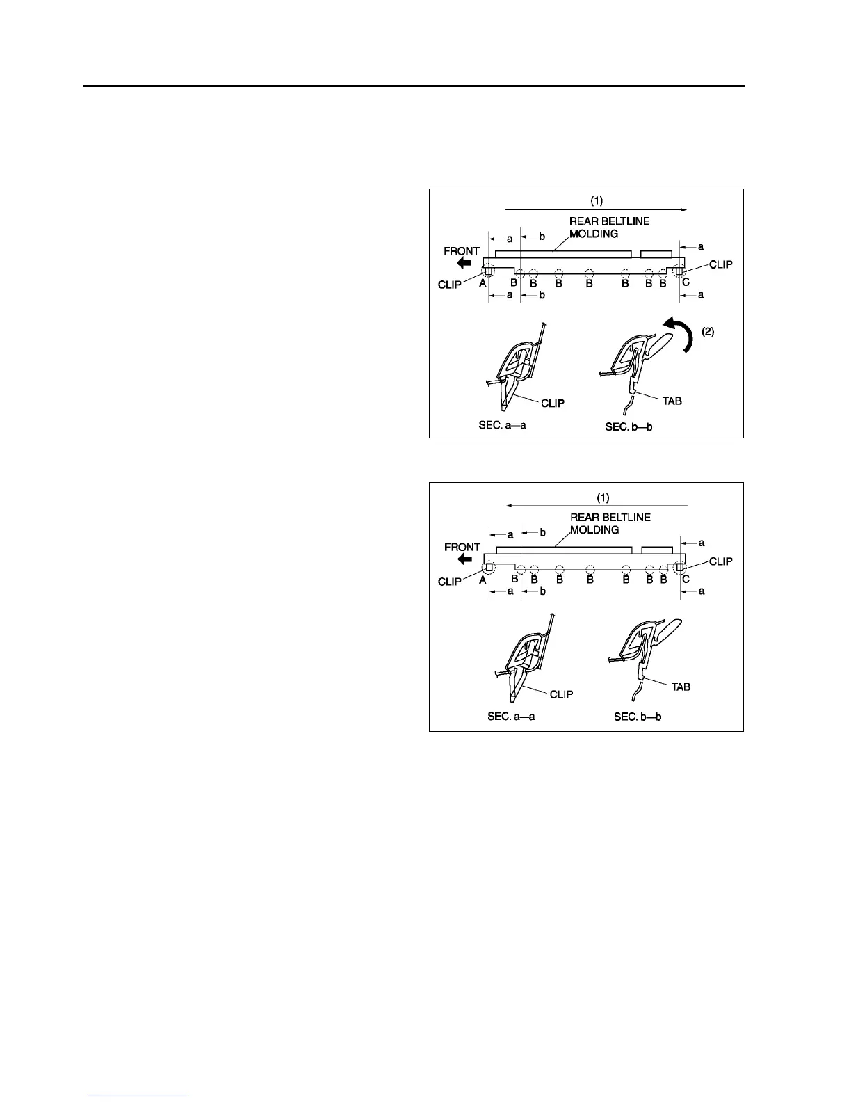 • When removing the rear beltline molding, the clip may be damaged. If the clip is damaged, replace it with