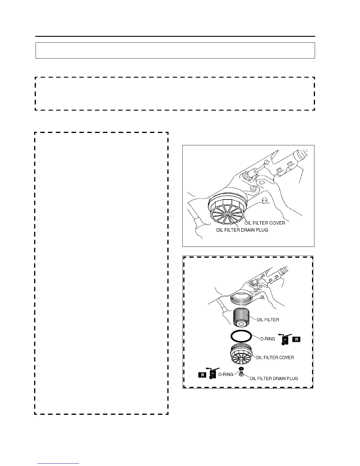 • To avoid damage to the oil filter, use only specified oil filter.
