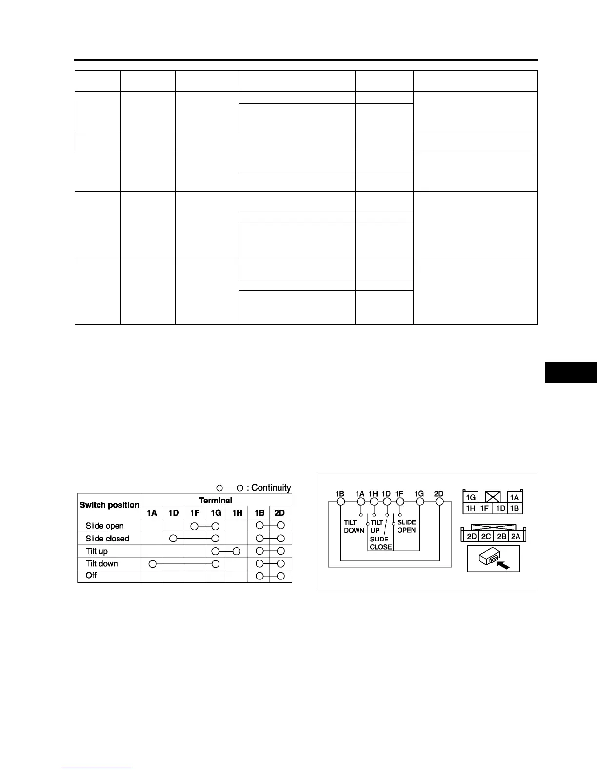 2. Inspect for continuity between the sunroof switch terminals using an ohmmeter.