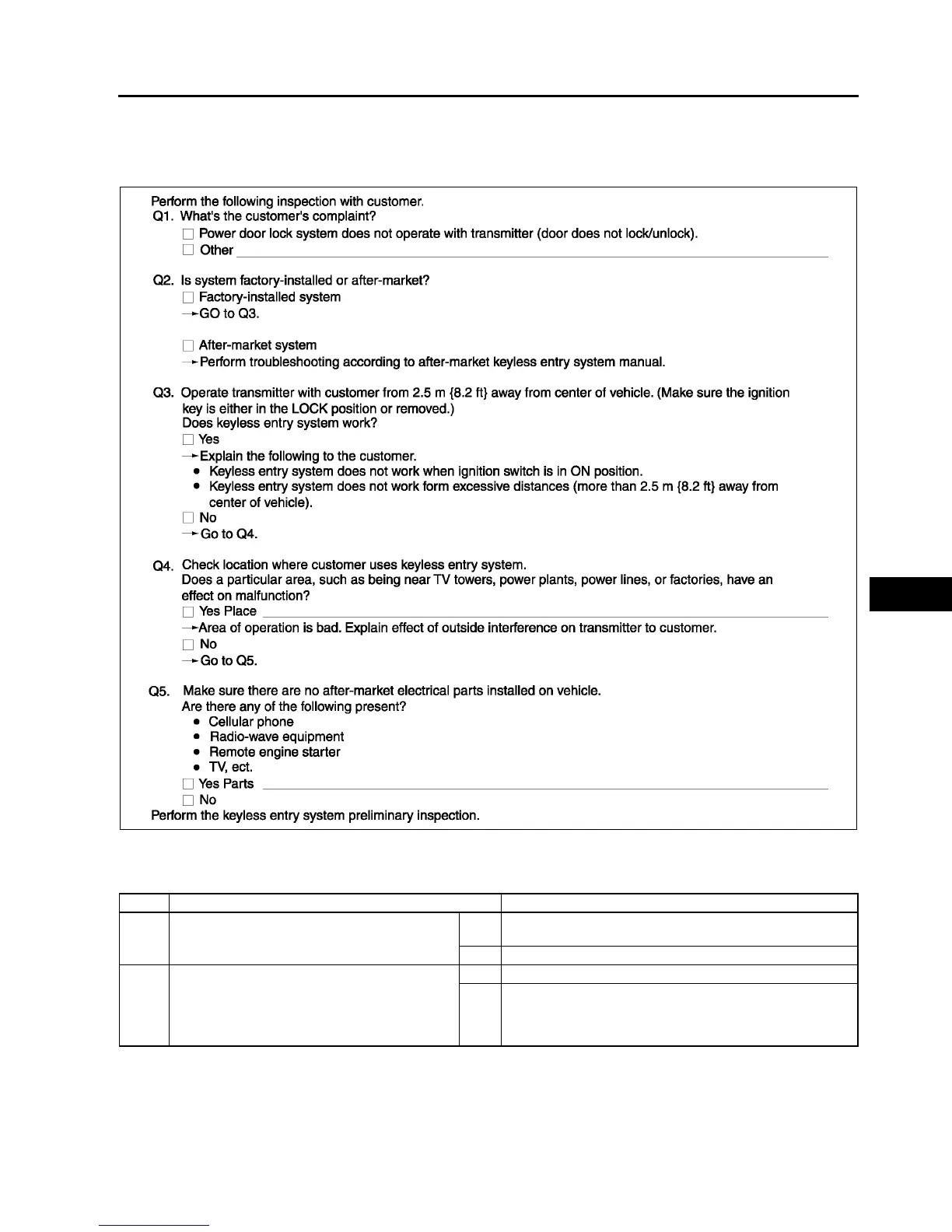 KEYLESS ENTRY SYSTEM PRELIMINARY INSPECTION