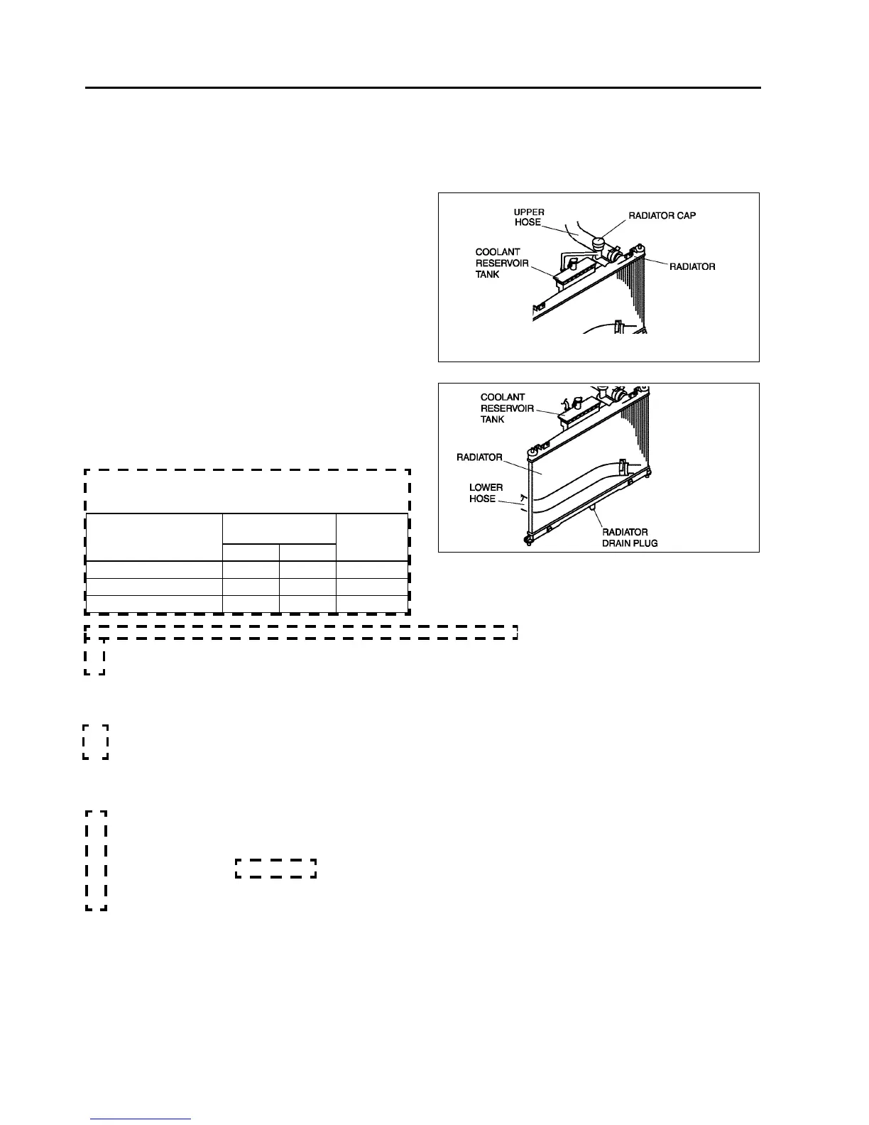 • Never remove the radiator cap while the engine is running, or when the engine and radiator are