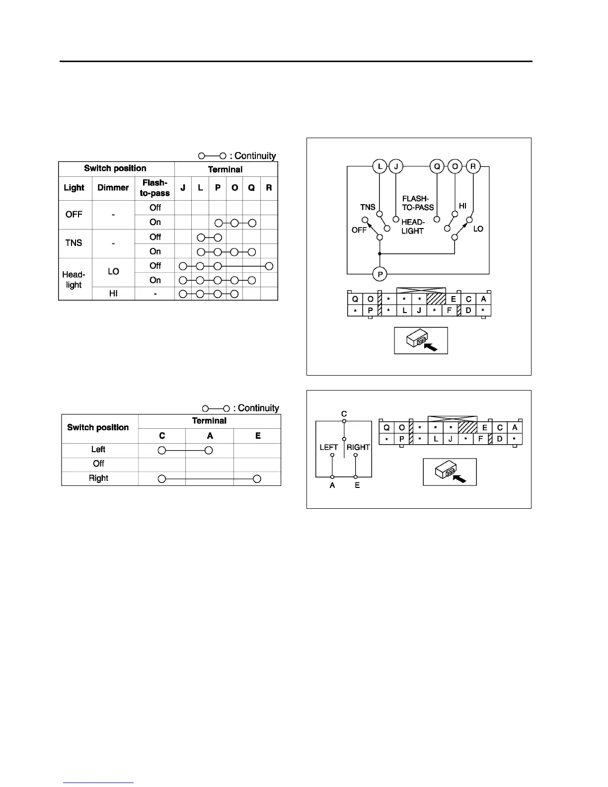 2. Inspect for continuity between the light switch terminals using an ohmmeter.