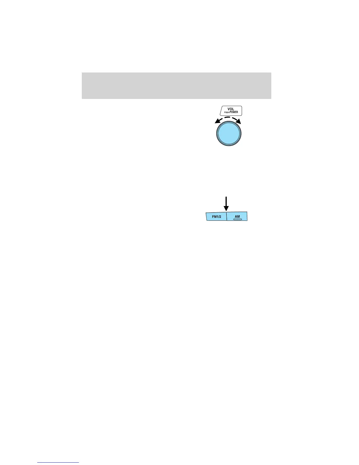 Select AM by pressing the AM button and FM1 or FM2 by pressing the