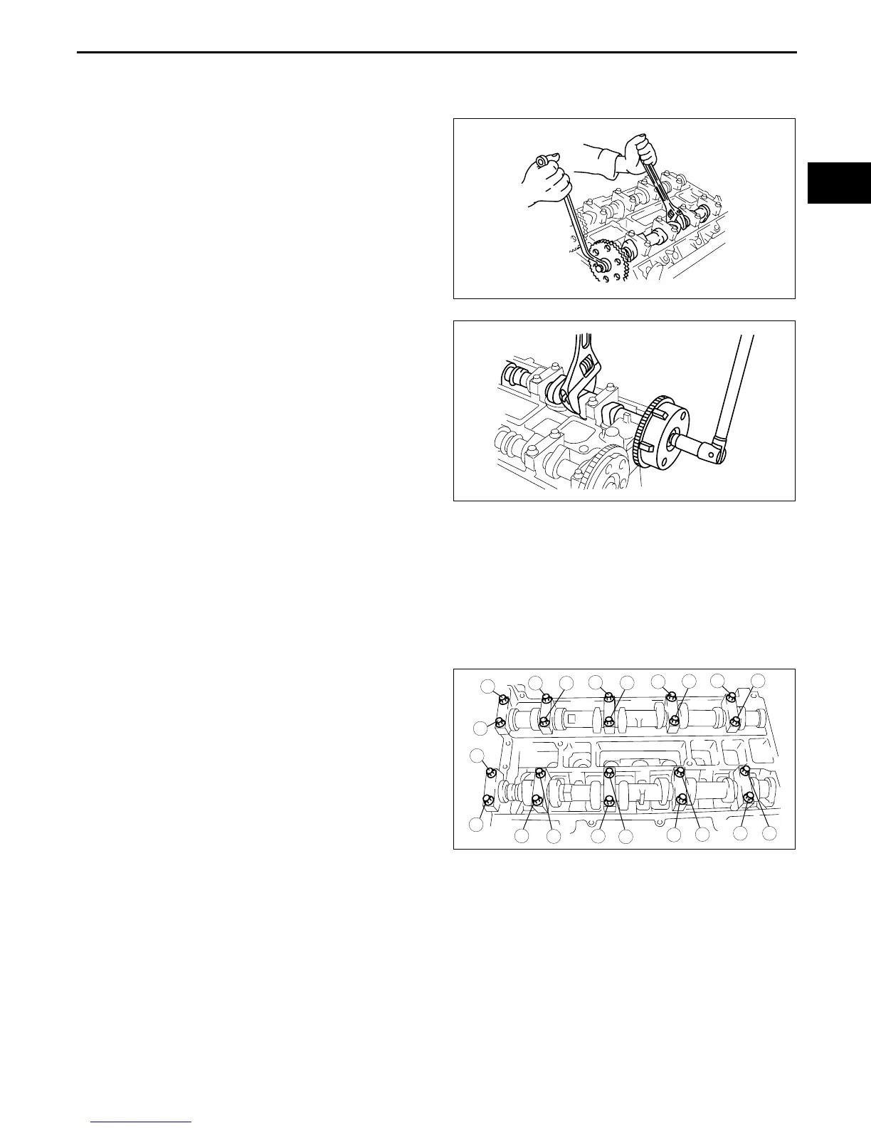 2. Loosen the camshaft caps bolts in 2—3 steps in