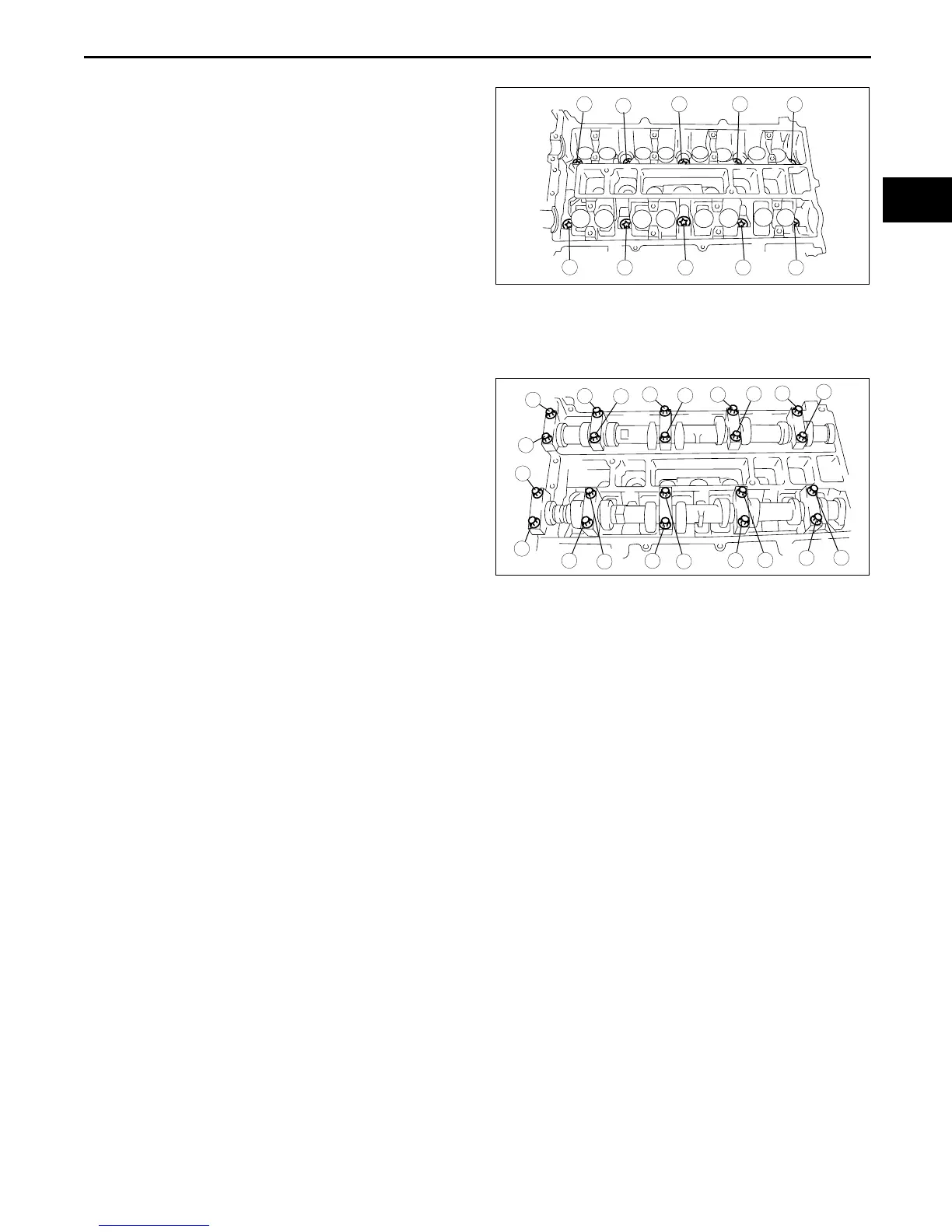 3. Tighten the camshaft cap bolt in the order shown