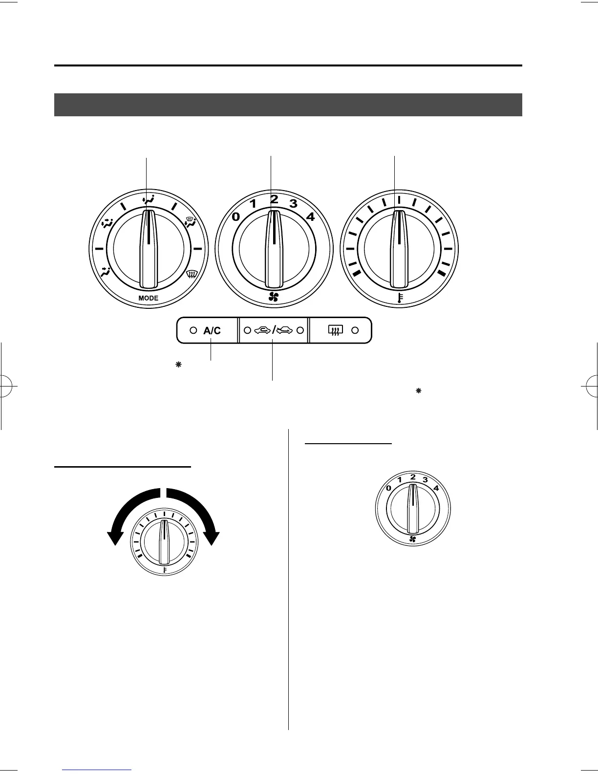 Temperature control dialFan control dialMode selector dial