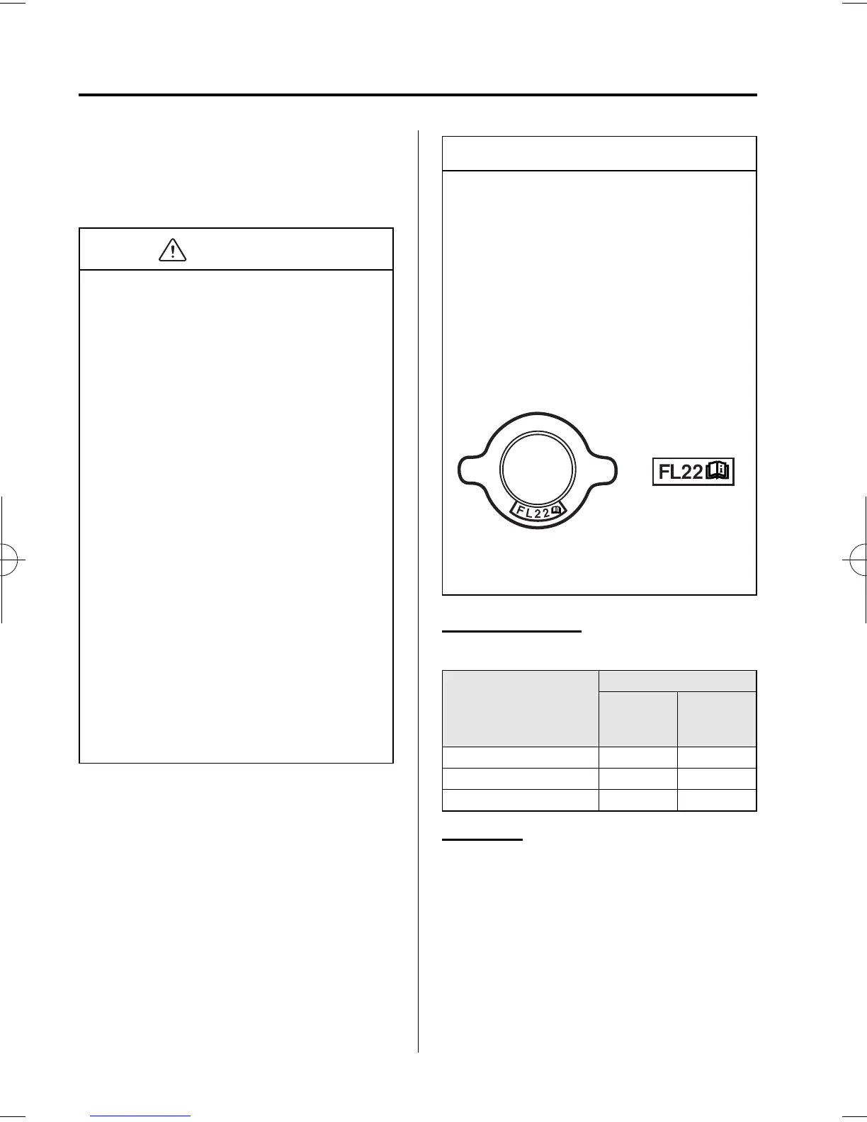 the cooling system cap, use FL22 type