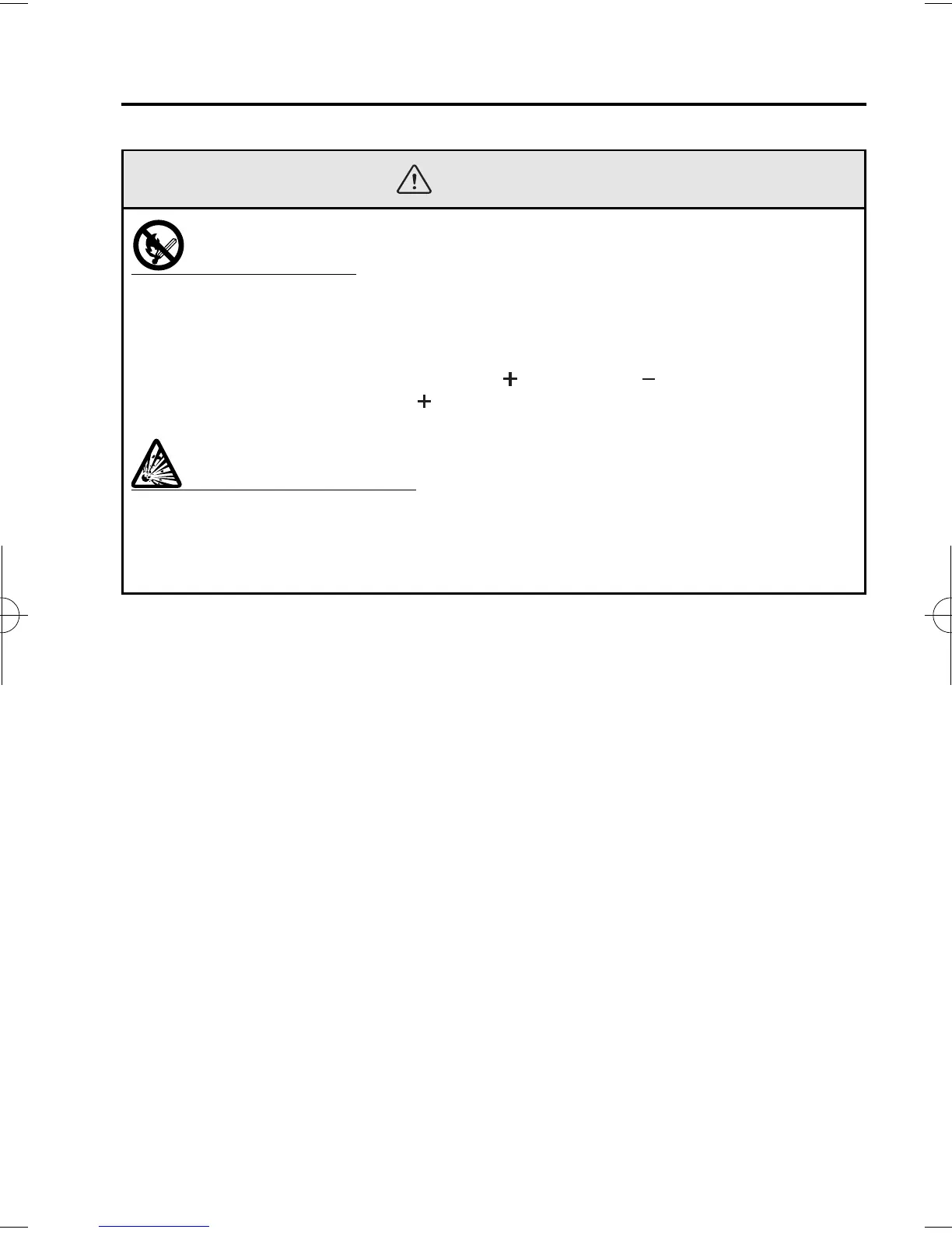 exploding battery can cause serious burns and injuries. Keep all flames, including