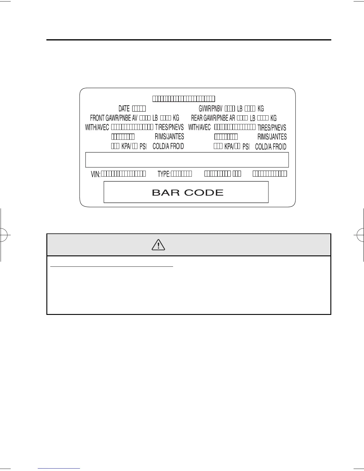 Exceeding the Safety Certification Label axle weight rating limits is dangerous and
