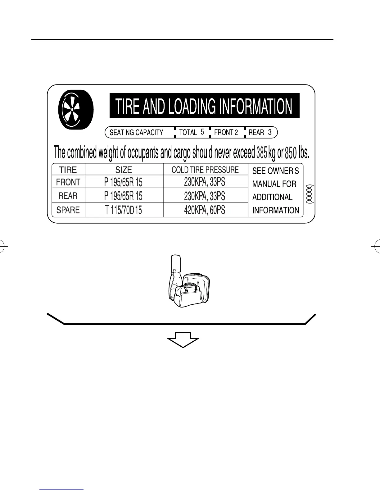 the “combination weight of occupants and cargo should never exceed” value on the tire