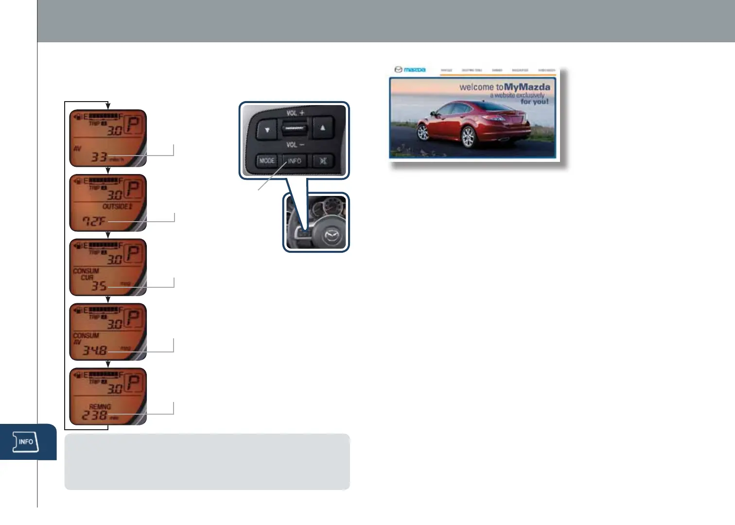 • To clear Average MPH or Consumer Avg MPG, push and hold INFO button