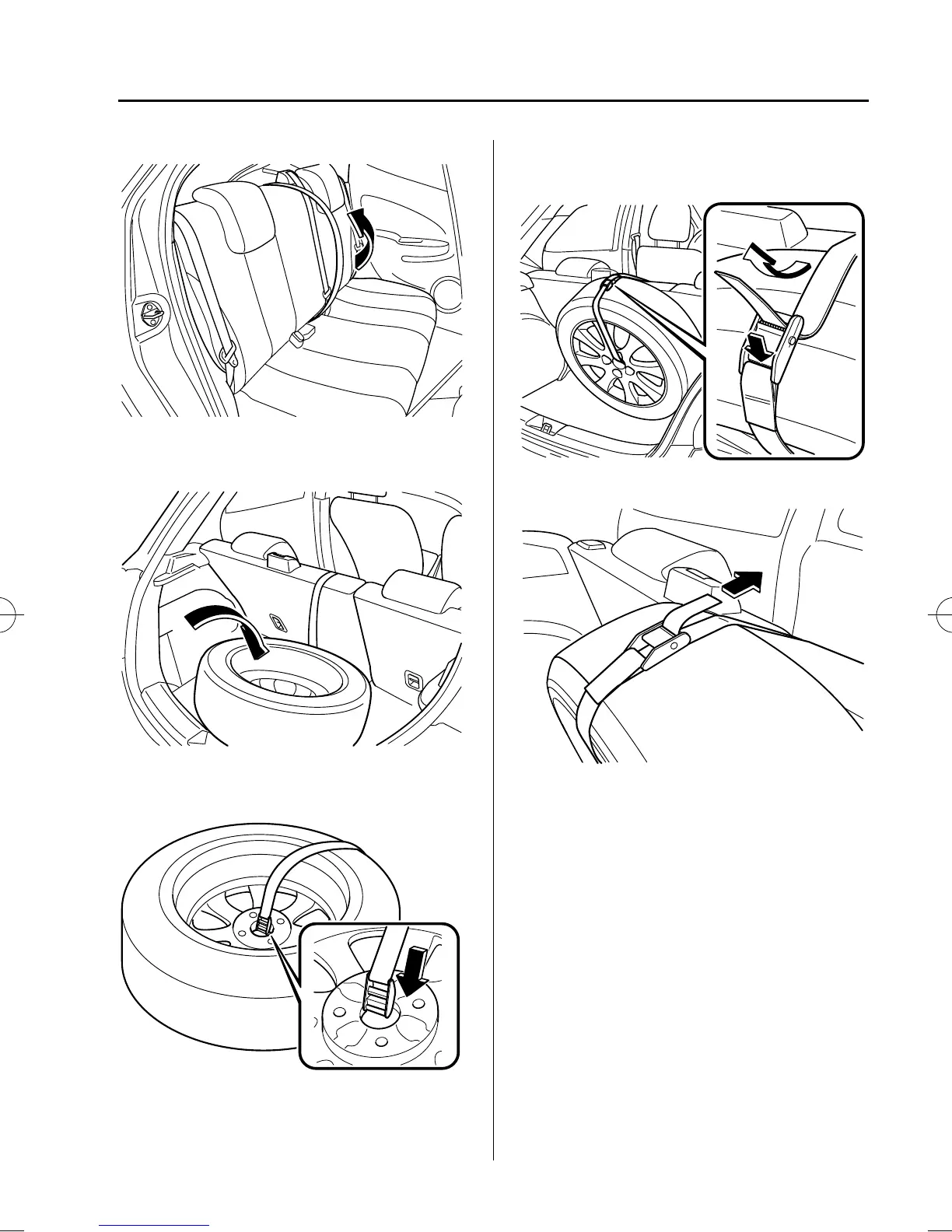 14. Pull the belt end to secure the flat tire.