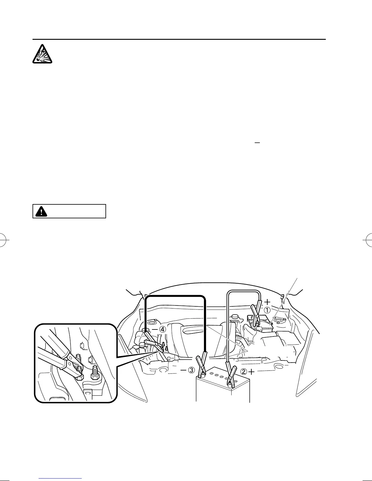 Connecting a jumper cable near or to moving parts (cooling fans, belts) is dangerous.