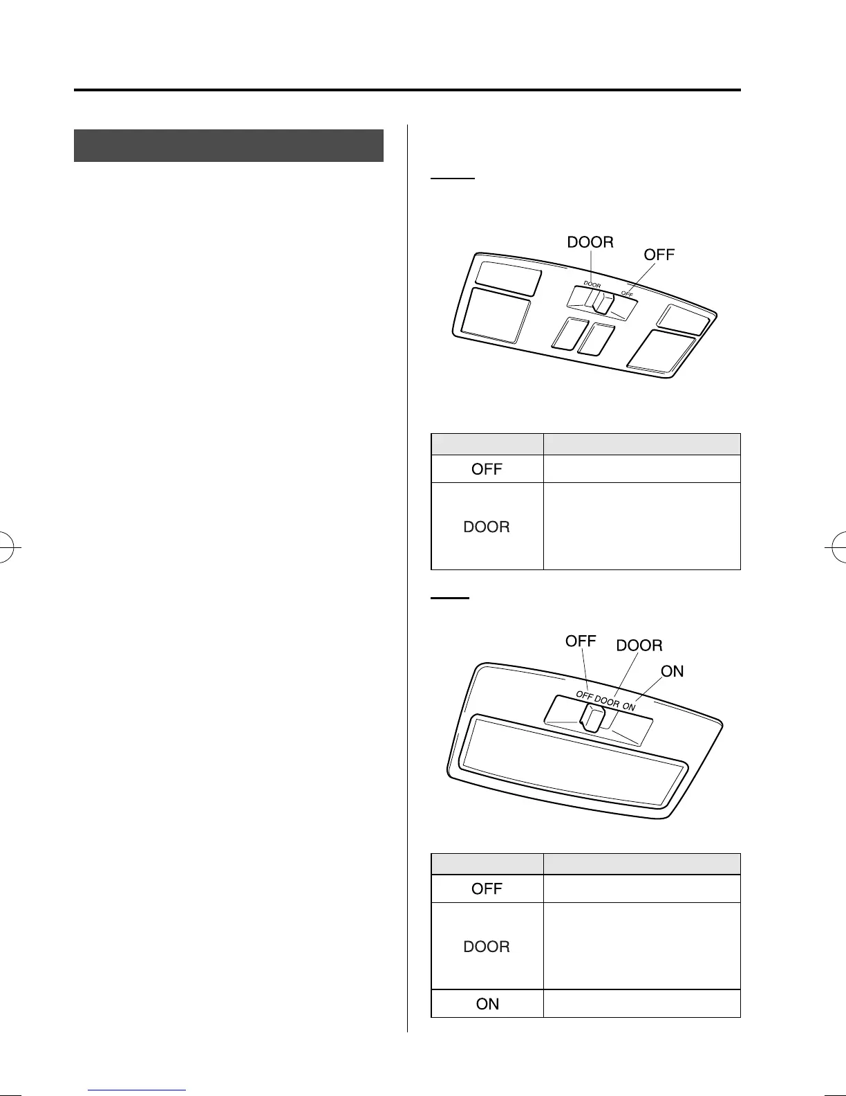 Switch Position Rear Overhead Lights