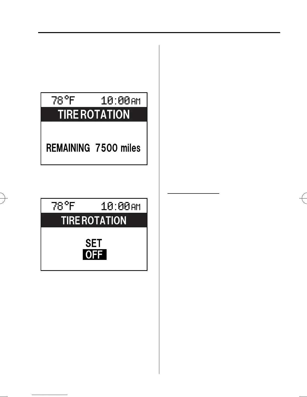 (TIRE ROTATION or SERVICE DUE)
