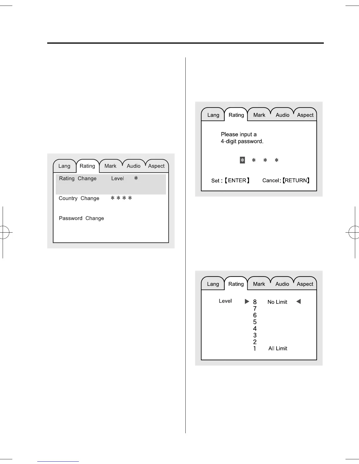Rating change: Parent lock level sett ing