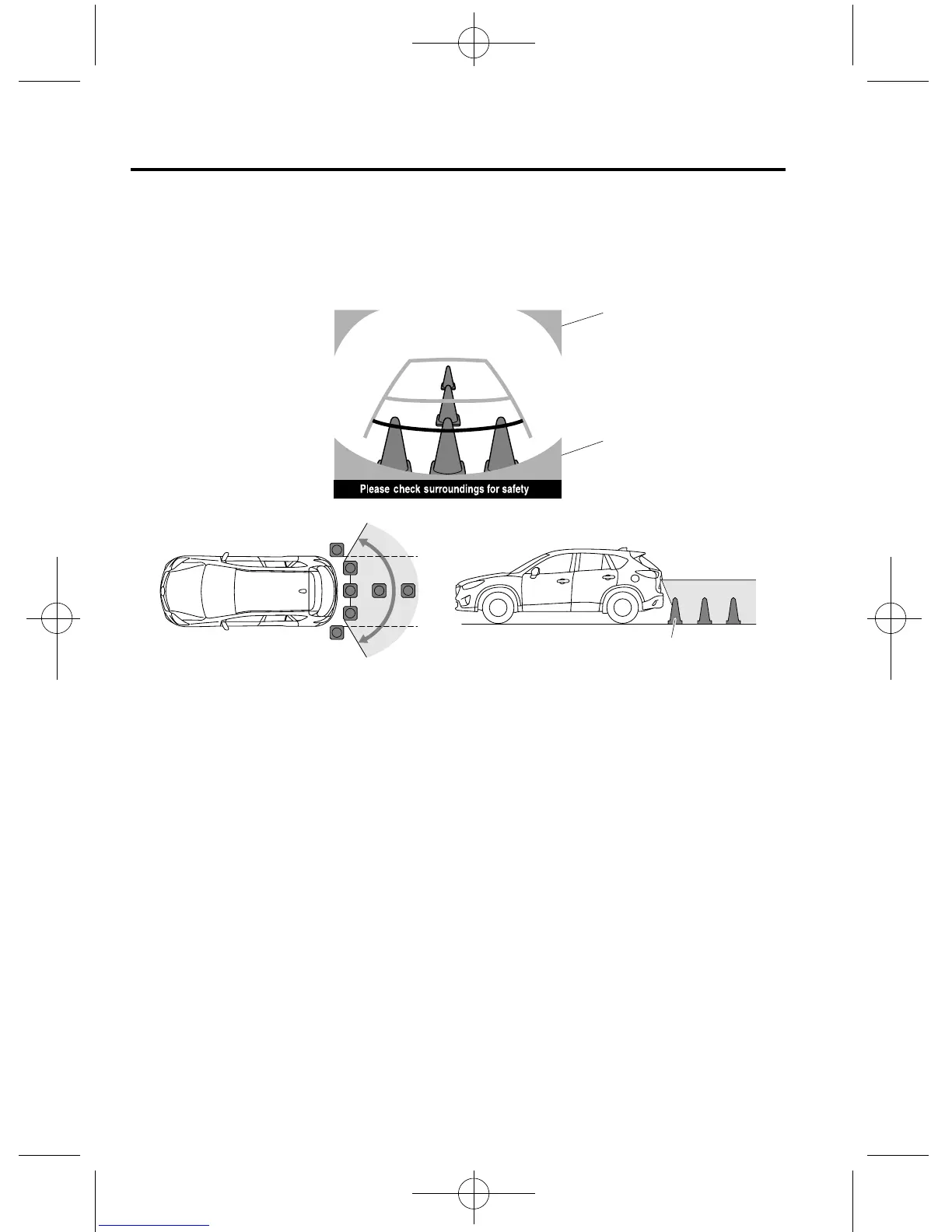 The displayable range is limited. Objects under the bumper or around the bumper ends cannot be