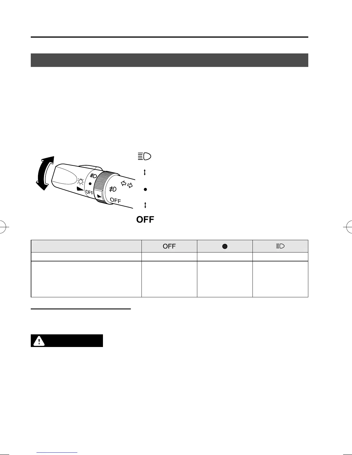 Turn the headlight switch to turn the headli ghts, other exterior lights and dashboard