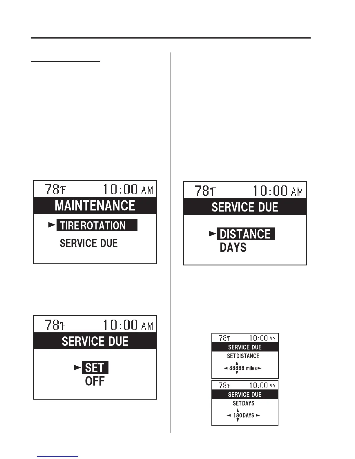 (TIRE ROTATION or SERVICE DUE)