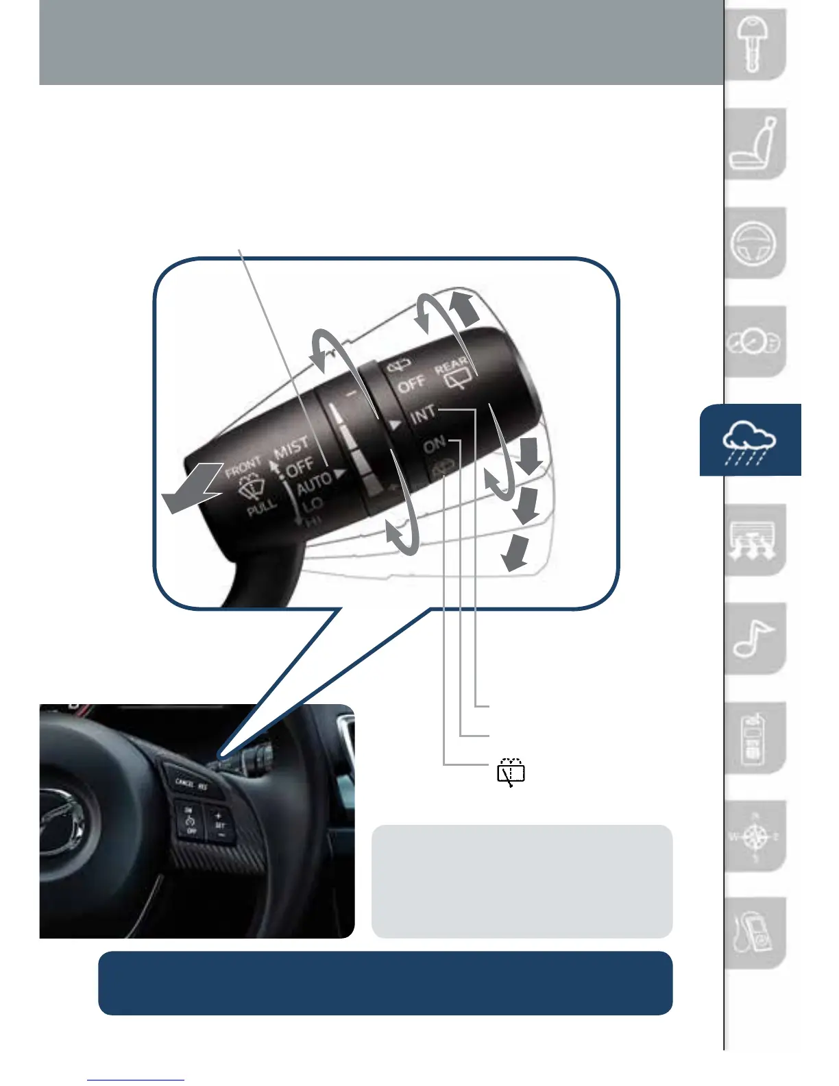 AUTO: The rain sensor senses the amount of rainfall and turns the wipers
