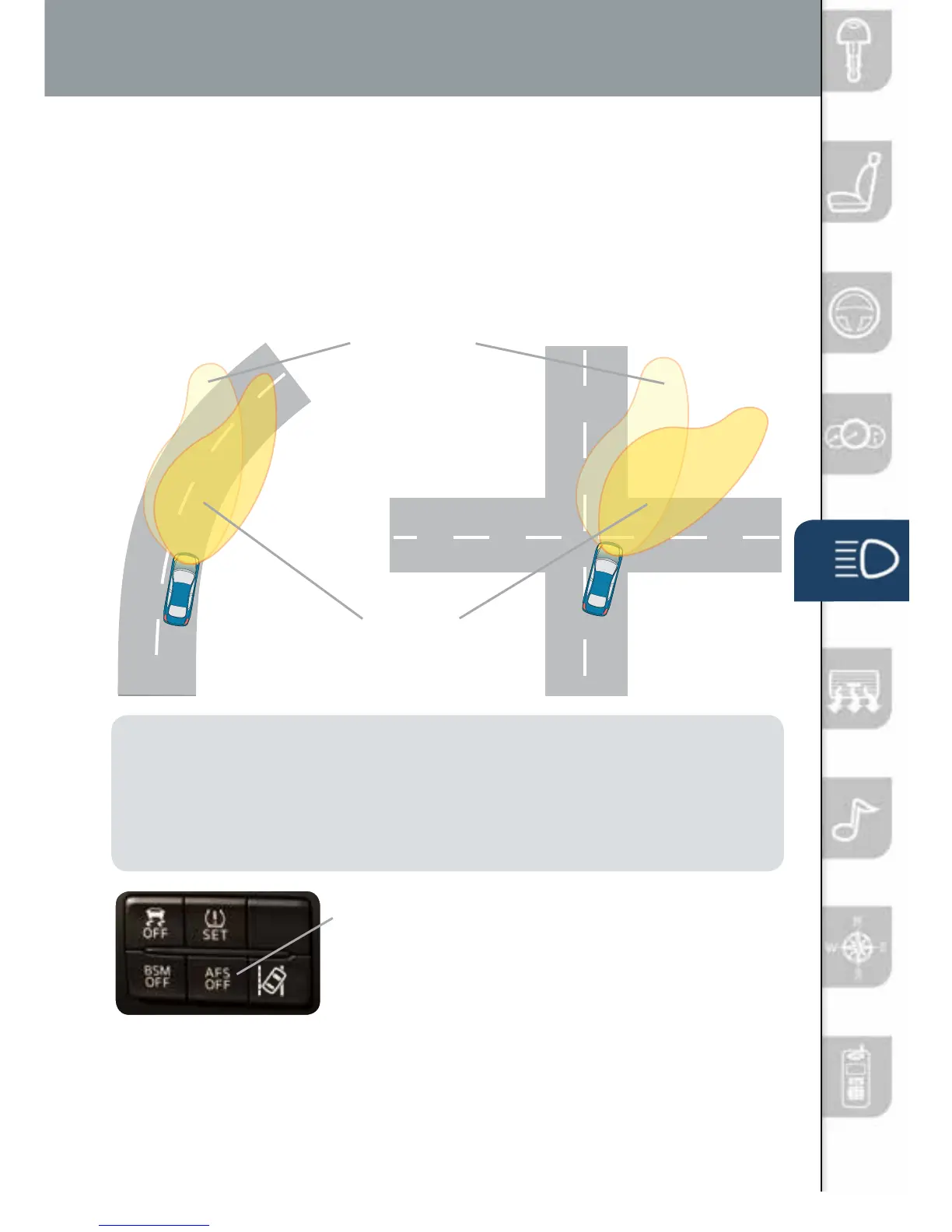 • With AFS, it is normal to see the headlights move and hear the sound of the