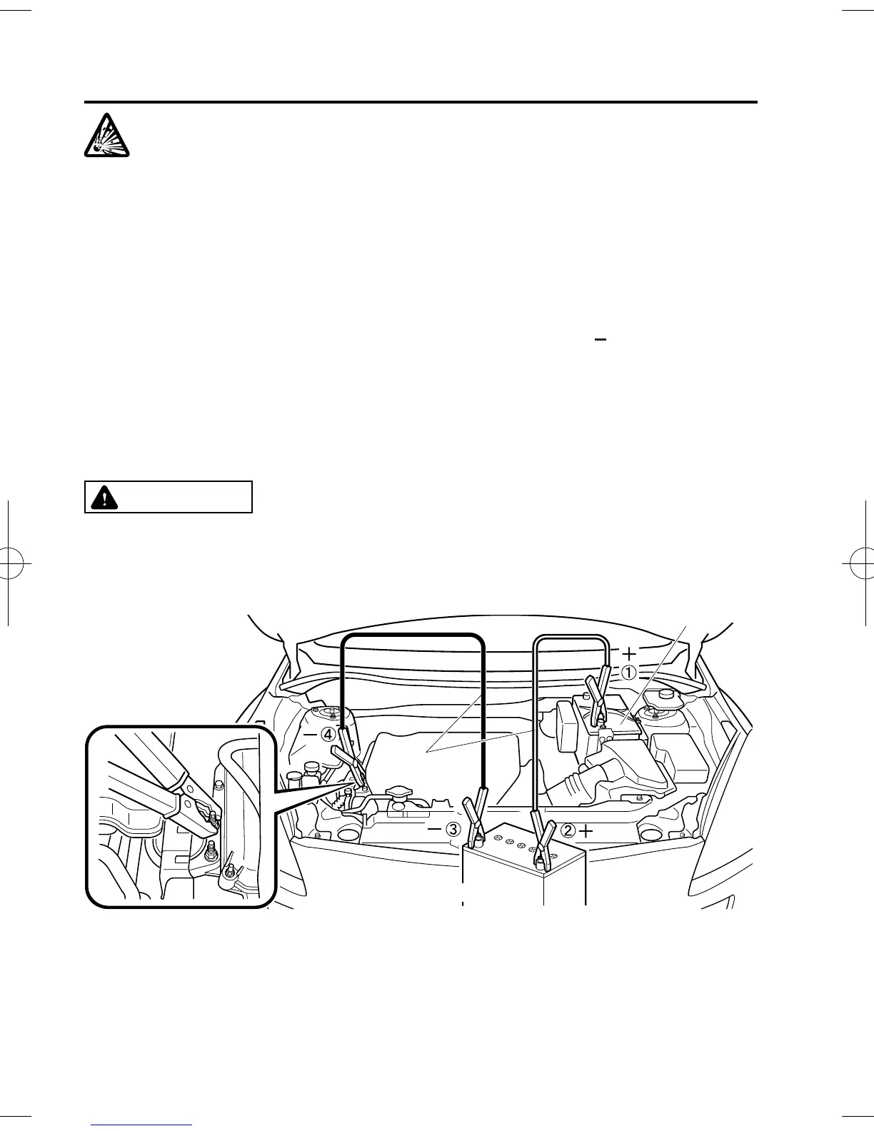 Do not jump-start a frozen battery or one with a low fluid level: