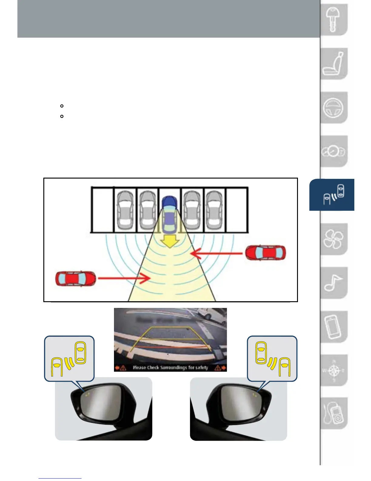 RCTA will notify the driver with indicators and sound: