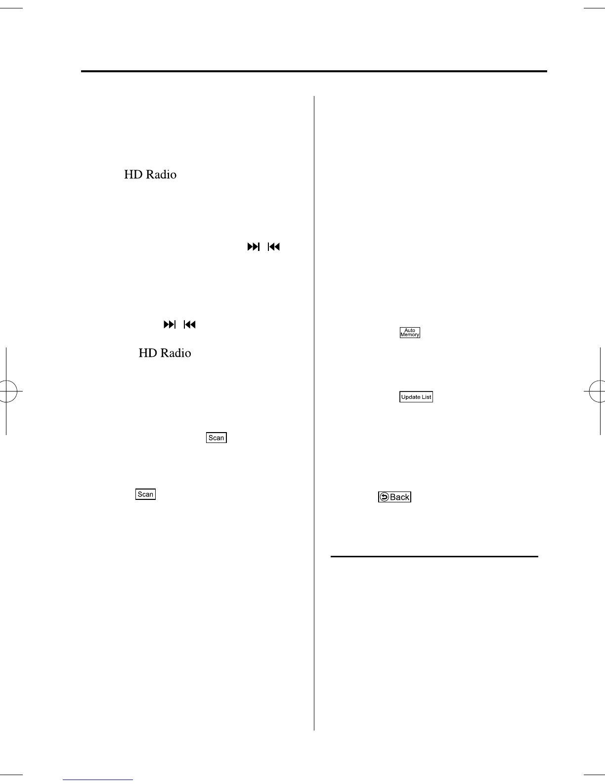 auto memory tuning to return to the AM/FM