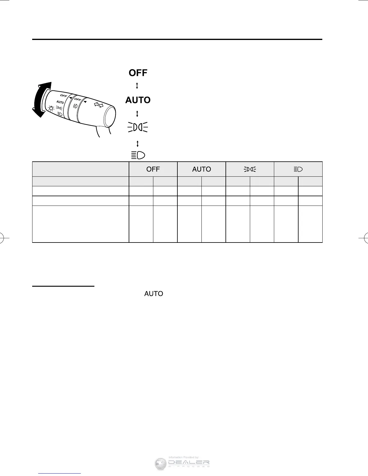 other exterior lights and dashboard illumination on or off (see chart above).