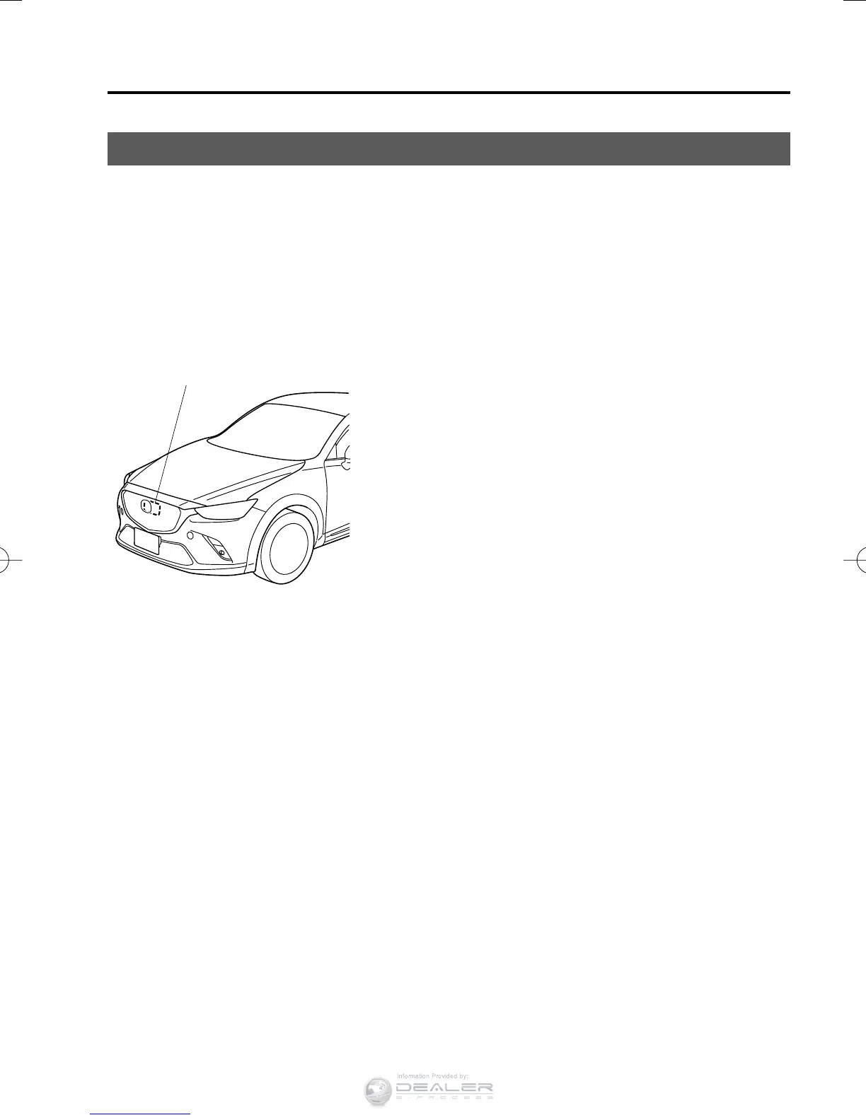 The radar sensor (front) functions by detecting the radio waves refl ected off a vehicle ahead