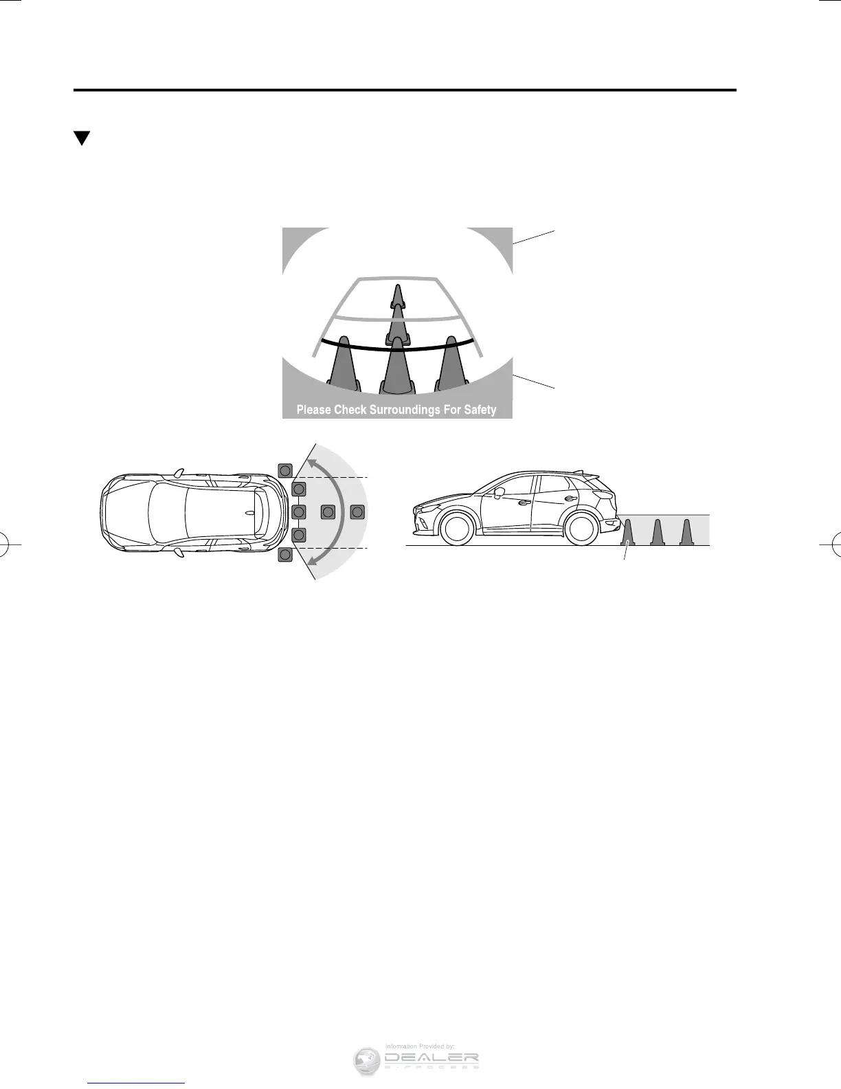 The displayable range is limited. Objects under the bumper or around the bumper ends
