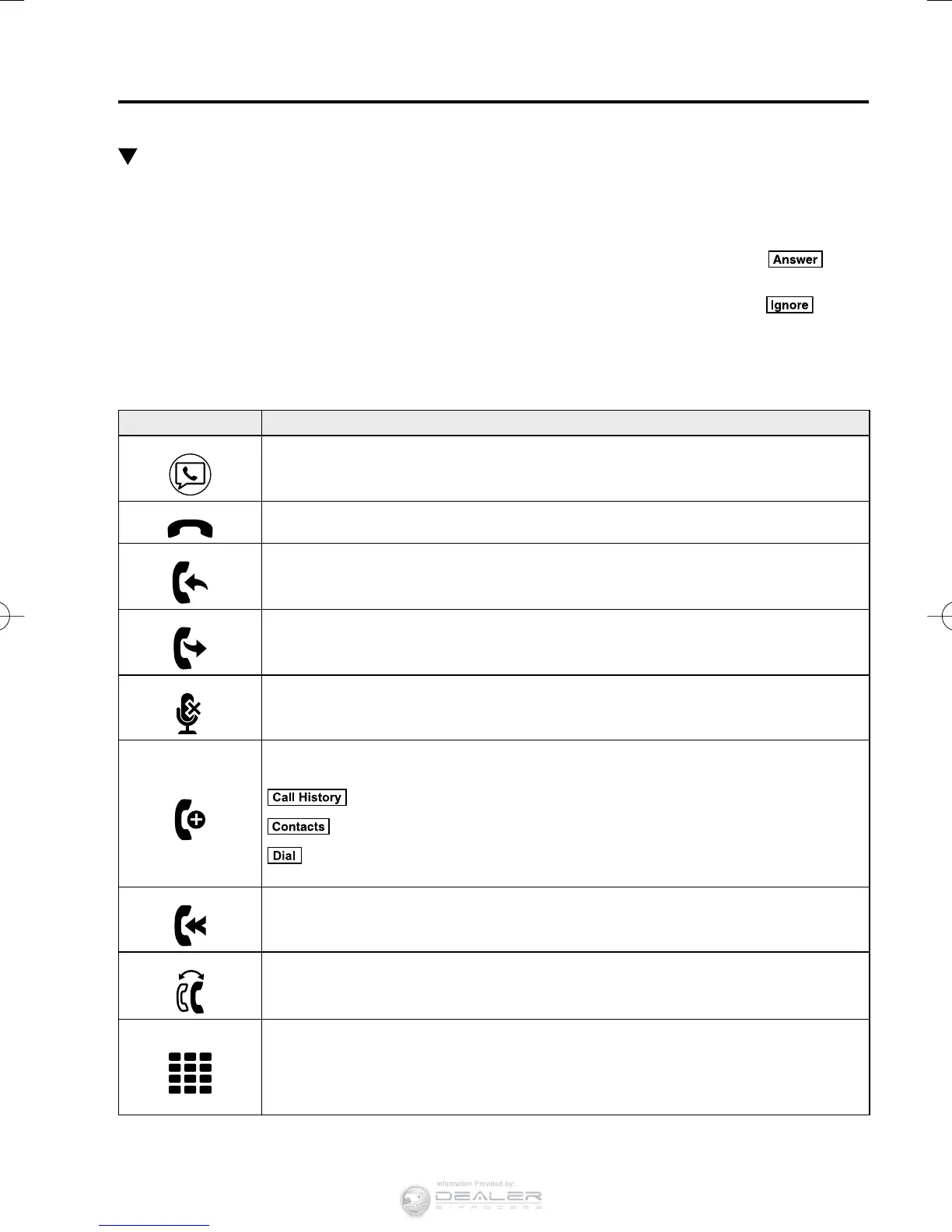 When an incoming call is received, the incoming call notifi cation screen is displayed. The