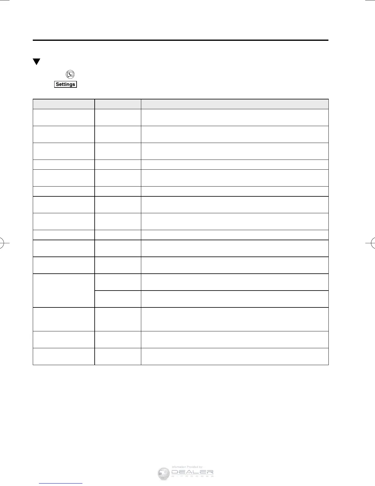 Ringtone Car/Phone/Off Changes the ringtone setting.