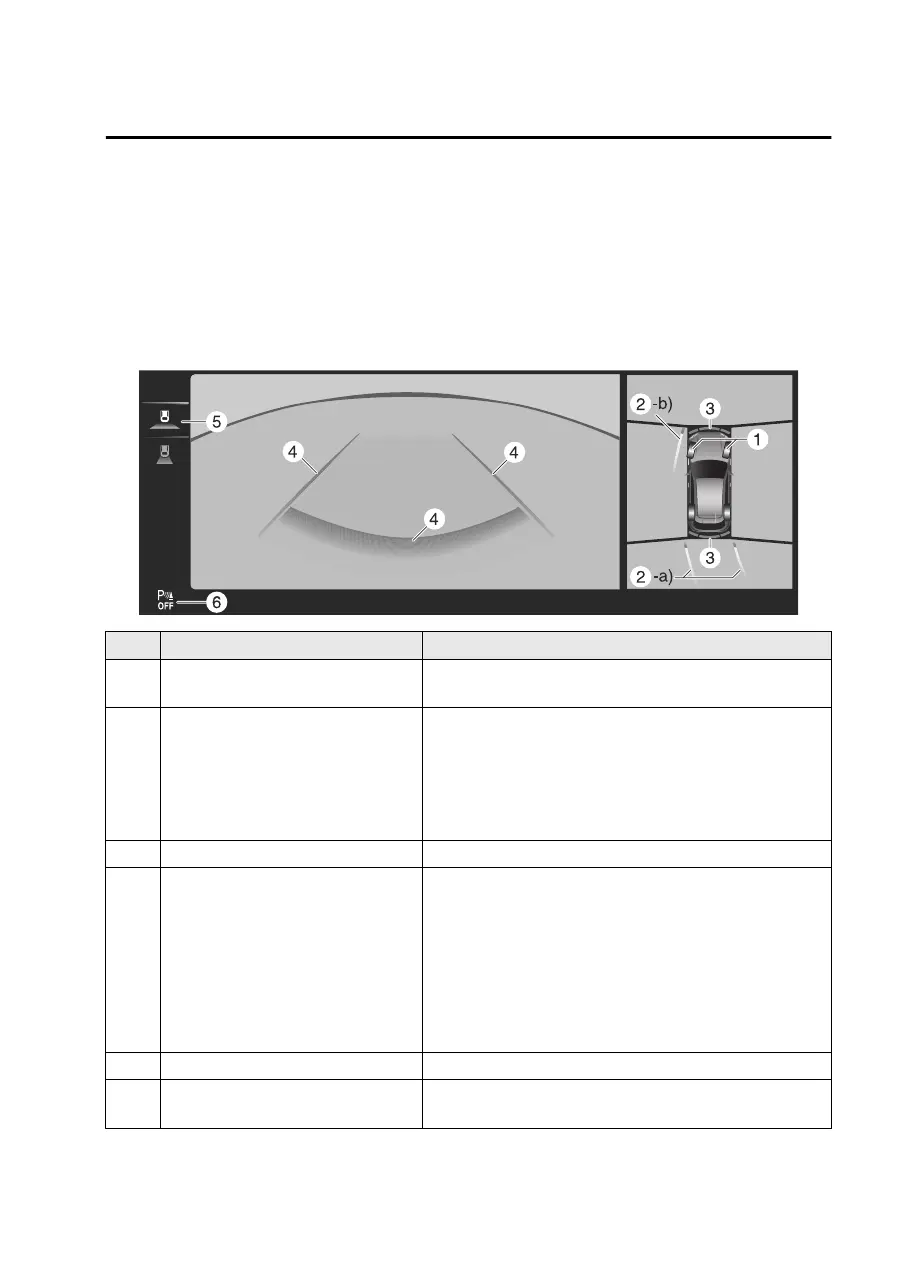 3 Parking sensor detection indication Indicates the obstruction detection status.