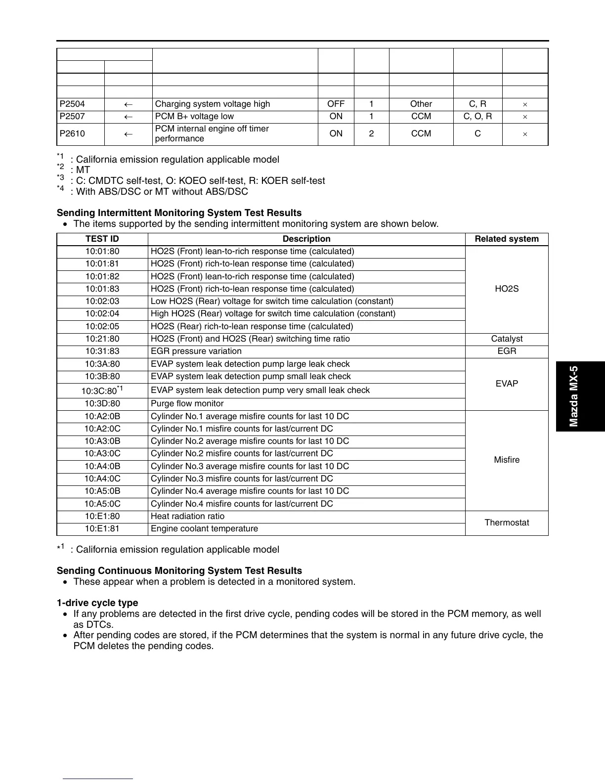 : C: CMDTC self-test, O: KOEO self-test, R: KOER self-test