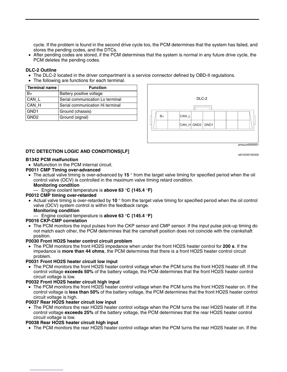 DTC DETECTION LOGIC AND CONDITIONS[LF]