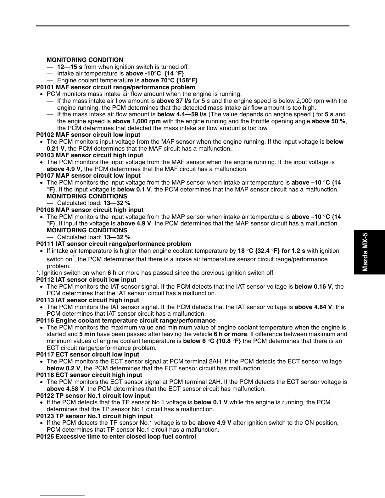 • The PCM monitors the input voltage from the MAP sensor when intake air temperature is above –10 °C {14