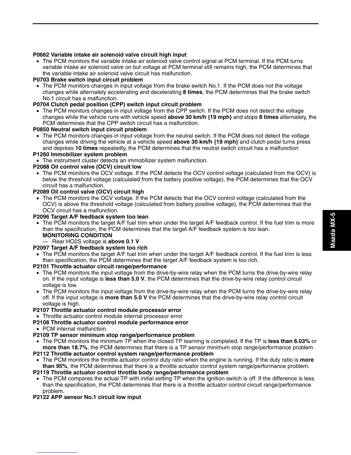 than the specification, the PCM determines that there is a throttle actuator control circuit range/performance